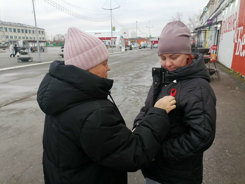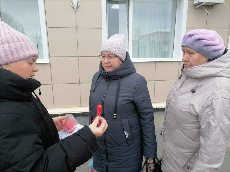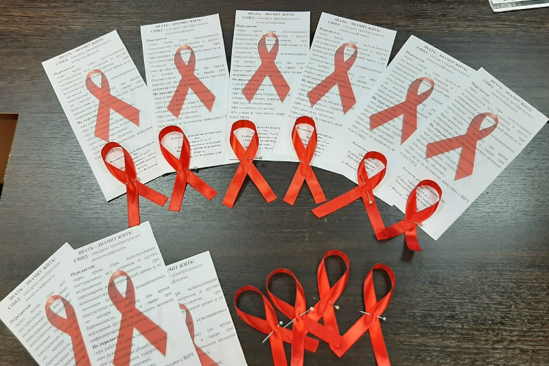 Участники акции получили закладки «СПИД. Узнай больше» с информацией о том, как передается и как не передается ВИЧ-инфекция, а также красные ленточки – международный символ борьбы со СПИДом.